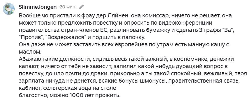 Седня заступился за фрау Ляйнен, может назначат еврокомиссаром?