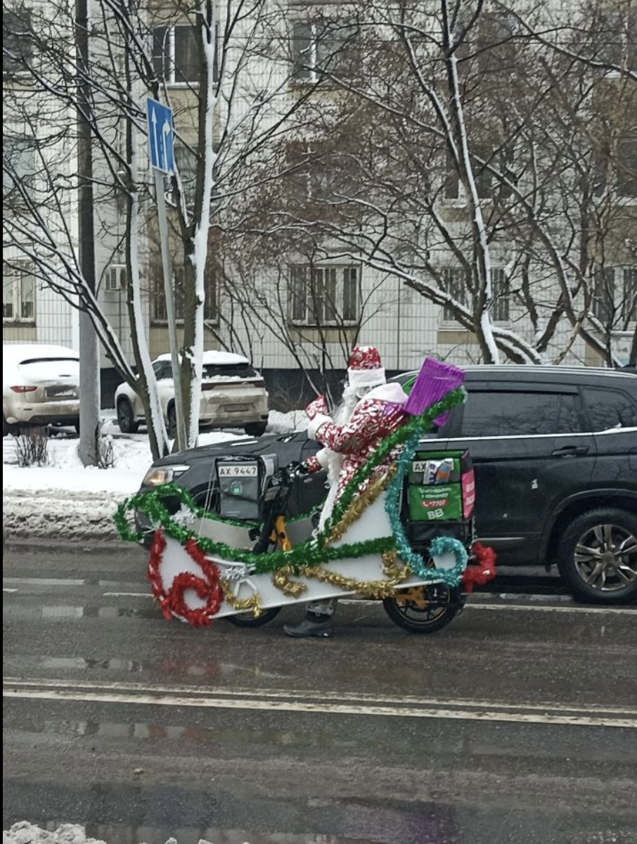 Смотрите какие красивые курьеры у нас по улицам катаются!+++ Вы какое новогоднее чудо уже видели?