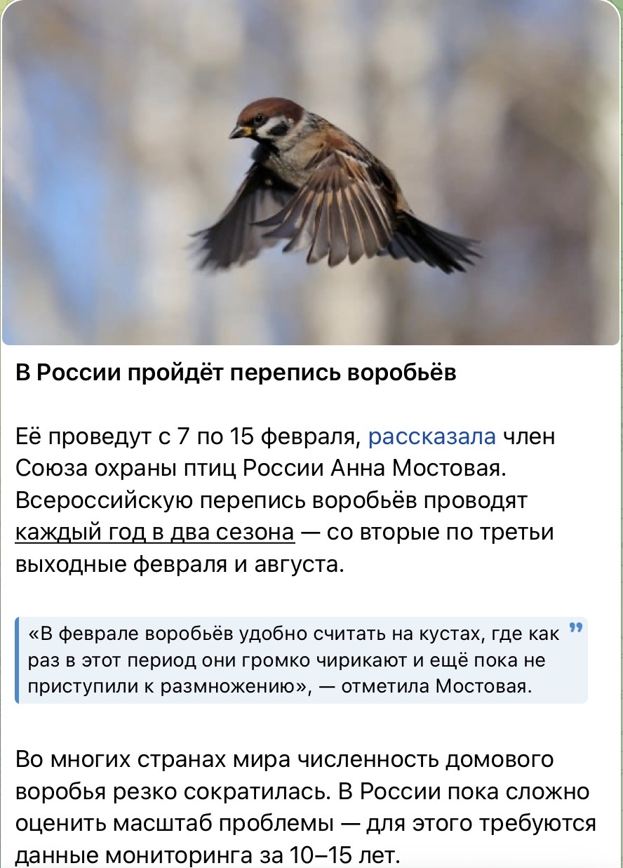 Раньше я любил ворон считать, а теперь надо воробьёв считать!+++ У Вас много воробьёв в округе?