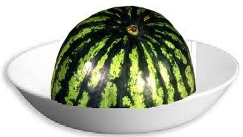 Срезанный арбуз следует хранить вот так(срезанным концом вниз)