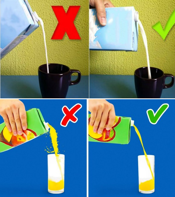 И молоко и соки из пакета следует наливать правильно